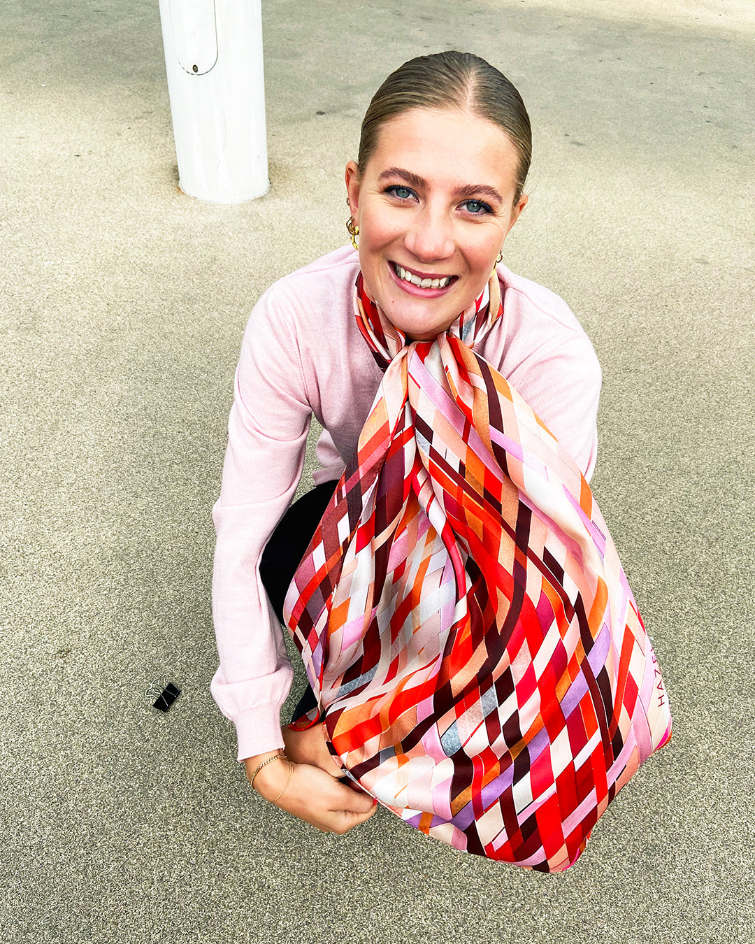 Vær opmærksom på at dine smykker ikke får fat i tørklædet.